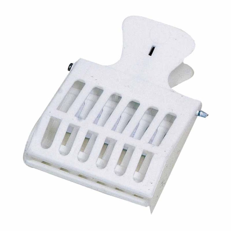 Matične klešče iz plastike se uporabljajo za prestrezanje matice direktno na satu. Čebele lahko prosto prehajajo skozi odprtine na obeh straneh.