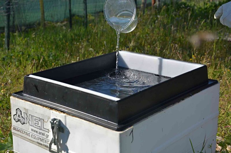 - polnjenje pitalnika z raztopino poteka nemoteno - čebele ne morejo prehajati skozi pitalnik,