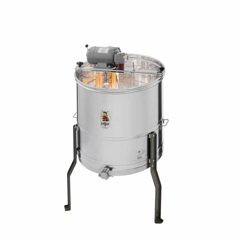Točilo za med na 4 sate z reduktorskim motorjem 110W / 230V in varnostnim stikalom, ki ustavi delovanje motorja, če odpremo pokrov točila. Najmodernejša tehnologija nam omogoča inovativno izdelavo dna točila. Dno soda je varjeno brez notranjih robov in je nagnjeno proti izpustu. Nerjaveča odtočna pipa je vgrajena na najnižjo točko, da lahko ves med odteče iz točila. Vsi deli točila, ki pridejo v stik z medom, so izdelani iz materialov, ki so primerni za prehrano. Pokrov točila je izdelan iz prosojnega akrilnega stekla. Posebna konstrukcija nog omogoča stabilno postavitev točila.