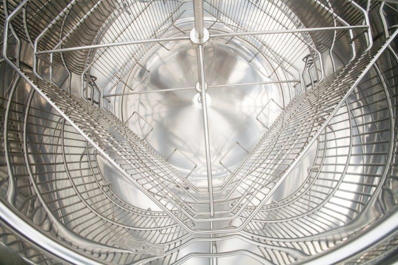 Točilo za med na 4 sate, z ročnim enosmernim gonilom z zavoro. Najmodernejša tehnologija nam omogoča inovativno izdelavo dna točila. Dno soda je varjeno brez notranjih robov in je nagnjeno proti izpustu. Privarjena nerjaveča odtočna pipa je vgrajena na najnižjo točko, da lahko ves med odteče iz točila. Čiščenje točila je enostavno. Vsi deli točila, ki pridejo v stik z medom, so izdelani iz materialov, ki so primerni za prehrano. Pokrov točila je izdelan iz prosojnega akrilnega stekla. Posebna konstrukcija nog omogoča stabilno postavitev točila.